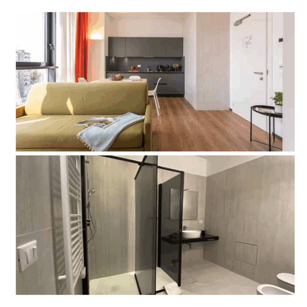 Gli appartamenti sono composti da zona giorno con cucina attrezzata, presentano una zona notte con ampio armadio, e bagno adiacente con doccia.