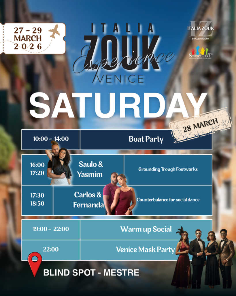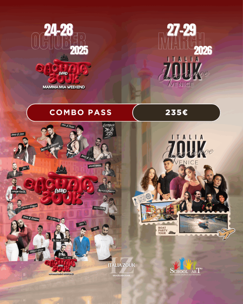 Tre giorni di Brazilian Zouk, workshop con artisti internazionali, social indimenticabili, feste a tema e momenti immersivi tra le meraviglie della città più romantica del mondo. Che tu sia un ballerino esperto o alla tua prima volta con lo Zouk, questo festival è pensato per accoglierti e farti sentire parte di una community globale che danza con il cuore.